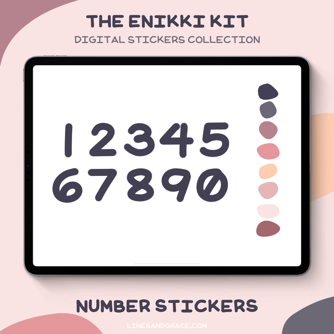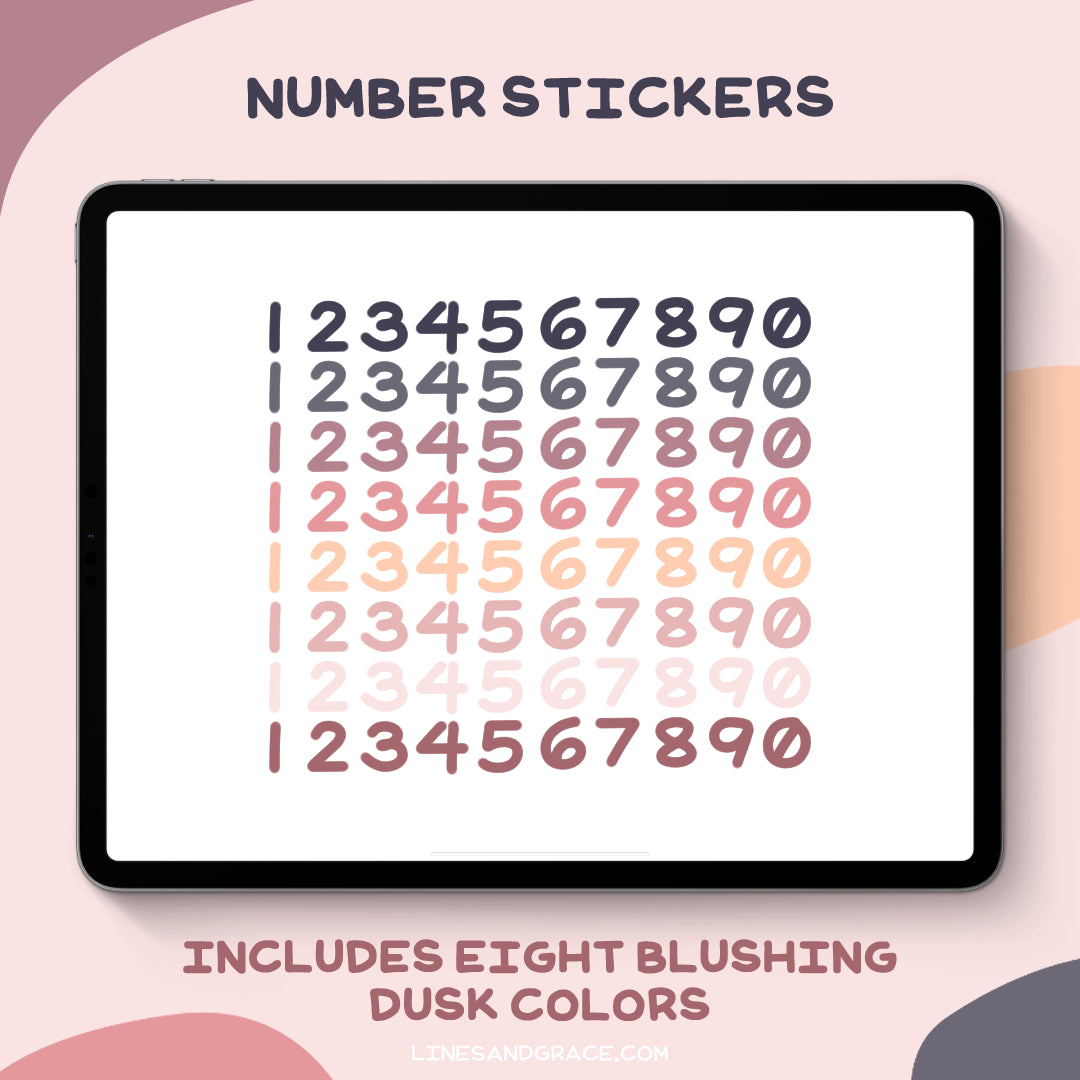 Decorate your journal, diary, or planner with this kawaii numbers digital sticker set in 8 blushing dusk colors.